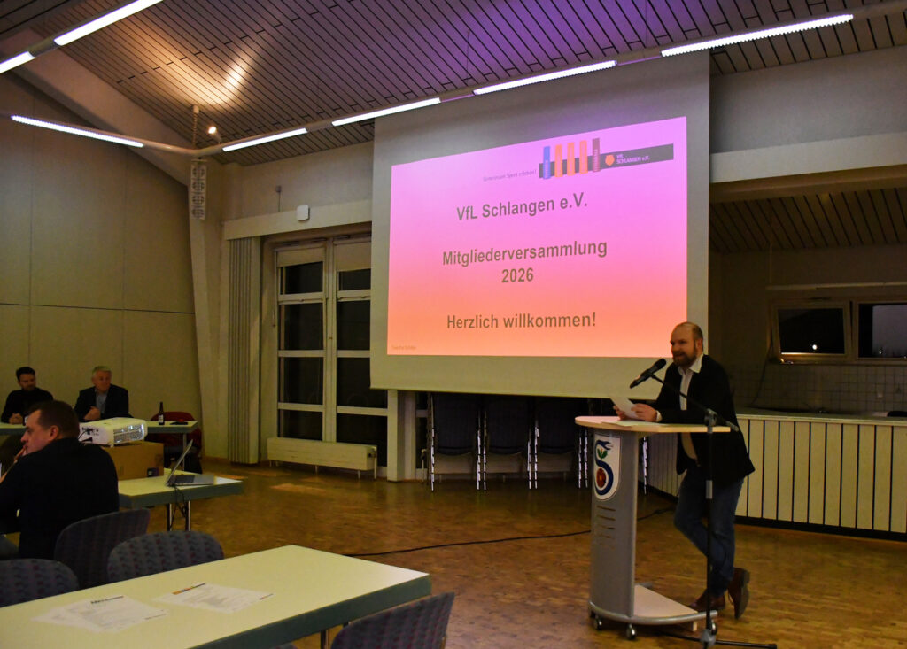 Beim größten Verein der Gemeinde, dem VfL Schlangen, steht im März jeden Jahres die Jahreshauptversammlung auf dem Programm. Und so konnte Vereinsvorsitzender Sascha Schiller am 6. März 2026 zahlreiche Mitglieder im Bürgerhaus der Gemeinde Schlangen begrüßen. Auch der stellvertretende Bürgermeister Hannes Schoodt richtete ein Grußwort und das von Bürgermeister Marcus Püster an die Versammlung und würdigte die wichtige Rolle des VfL für das gesellschaftliche Leben in der Gemeinde.